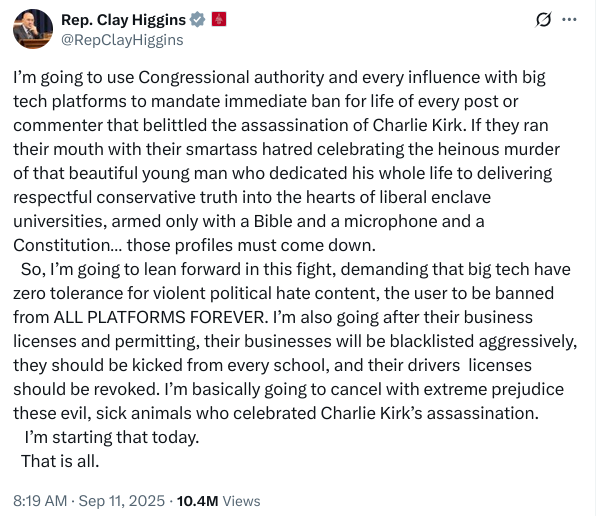 are encouraging their sizable followings to violence after the events of Sept 10, 2025.